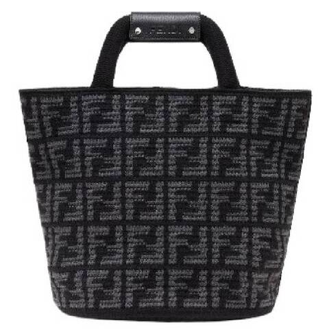 Fendi Mens Tote. SKU: 7VA602-APDH-F1MLQ. Material: Cashmere;Leather;Polyamide. Color: Black/Asf/Black/P. Size: 32cm x 30cm x 42cm. Fendi FF Cashmere Blend Shopping Bag. The cashmere knit shopper bag features an FF motif in shades of gray and black. A special treatment of the yarn gives the bag a compact, durable finish. It is unlined and has padded handles with black leather detailing, along with a snap-button closure. 65% cashmere, 35% polyamide, 100% calf leather. M ade in Italy.