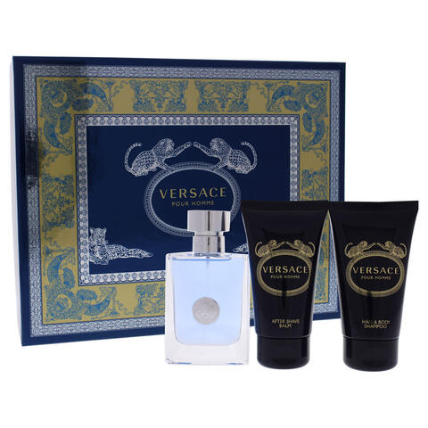 Launch year: 2008. Fragrance Family: Aromatic Fougere. Top notes: Neroli, Bitter Orange Leaves, Citron of Diamante, Bergamot. Heart notes: Geranium, Blue Hyacinth, Clary Sage, Cedarwood. Base notes: Oud, Mineral Amber, Musk, Tonka. Design house: Versace. Design house category: fashion. Design house country: Italy. Scent name: Versace Pour Homme. Gender: Mens. Category: Fragrance. SubType: Gift Set. Barcode: 8011003902989. Pour Homme Set Edt50+Hbs50+After Shave Balm50. Versace Mens Versace Pour Homme Gift Set Fragrances 8011003902989. <br/><br/> This item is only valid for shipment in the Contiguous United States & Canada.