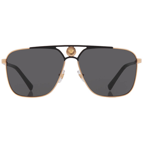 Versace Sunglasses. Series number: VE2238. Color code: 143687. Shape: Navigator. Lens Width: 61 mm. Lens Bridge: 13 mm. Arm Length: 140 mm. 100% UV protection. Non-Polarized. Frame Material: Metal. Frame Color: Gold/Matte Black. Lenses Type: Grey. Rim Style: Full-Rim. UPC/EAN code: 8056597523493. Versace Grey Navigator Mens Sunglasses VE2238 143687 61.<br/><br/>Manufacturer's Packaging Included. Packaging Size And Color May Vary.