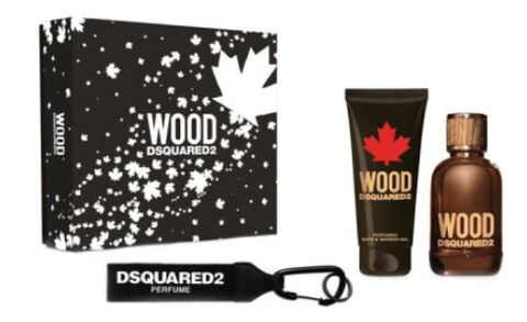 Launch year: 2018. Top notes: Bergamot calabrian, Sicilian lemon, Tangerine. Heart notes: Ginger, Cardamom, Violet leaves. Base notes: Vetiver, White woods, Ambroxan. Design house: Dsquared2. Scent name: Wood. Gender: Mens. Category: Fragrance. SubType: Gift Set. Barcode: 8011003877256. 3.4 EAU DE TOILETTE SPRAY + 3.4 SHOWER GEL + KEY RING. Dsquared2 Mens Wood Gift Set Fragrances 8011003877256. <br/><br/> This item is only valid for shipment in the Contiguous United States.