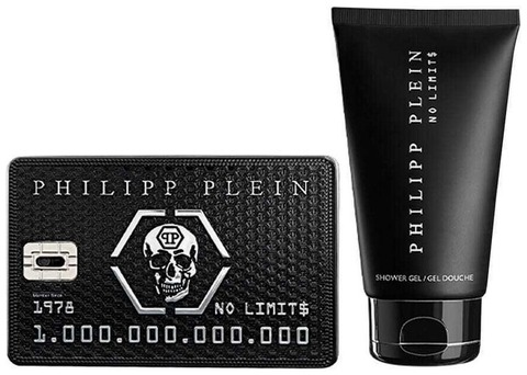 Launch year: 2020. Fragrance Family: Amber Spicy. Top notes: Black pepper, Star anise, Cardamom, Cloves, Cinnamon, Watery notes, Ginger, Bergamot. Heart notes: Dark chocolate, Bourbon vanilla, Incense, Amber. Base notes: Leather, Woodsy notes, Agarwood (oud), Patchouli, Cedar. Design house: Philipp Plein. Design house category: fashion. Design house country: Switzerland. Scent name: No Limit$. Gender: Mens. Category: Fragrance. SubType: Gift Set. Barcode: 7640365140350. Edp 90Ml + Shower Gel 150Ml. Philipp Plein Mens No Limit$ Gift Set Fragrances 7640365140350. <br/><br/> This item is only valid for shipment in the Contiguous United States & Canada.