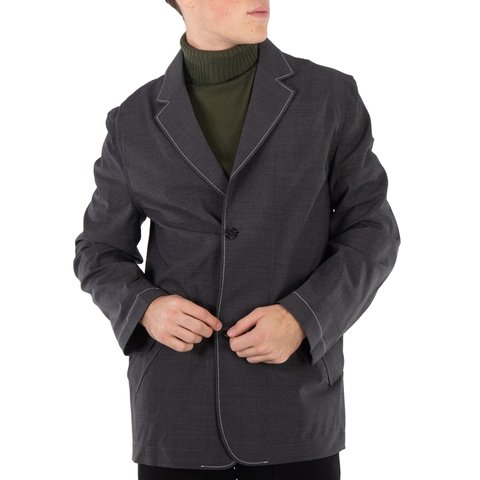 JW Anderson Mens Outerwear. Fashion category: Blazers. SKU: JK0269 PG1328 929. Color: Grey. JW Anderson Contrast-Stitched Single-Breated Blazer Jacket. The JW Anderson blazer, made from polyester, features a notch collar, long sleeves with button cuffs, two flap pockets, and a two-button closure, finished with a leather logo tag at the neck and contrast stitching along the lapel and cuffs. 100% polyester. Made in Italy.