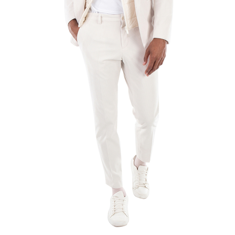 Hugo Boss Mens Bottoms. Fashion category: Pants & Leggings. SKU: 50530665-131. Color: Open White. Hugo Boss Slim-Fit Corduroy Trousers. This trouser features a button and zip closure, side slash pockets at the bottom front, and is partially lined. 100% Polyester.