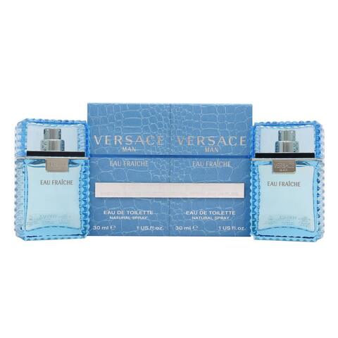 Launch year: 2006. Top notes: Lemon, Bergamot, Carambola (star fruit), Cardamom, Brazilian rosewood. Heart notes: Cedar, Tarragon, Sage, Pepper. Base notes: Musk, Woodsy notes, Saffron, Amber, Sycamore. Design house: Versace. Scent name: Eau Fraiche. Gender: Mens. Category: Perfume. SubType: Gift Set. Barcode: 8018365500228. EDT 30ML DUO X 2. Versace Mens Eau Fraiche Duo Set Gift Set Fragrances 8018365500228. <br/><br/> This item is only valid for shipment in the Contiguous United States.