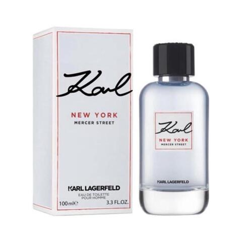 Launch year: 2020. Fragrance Family: Woody Aromatic. Top notes: Lime, Basil, White pepper. Heart notes: Rhubarb, Water jasmine, Geranium. Base notes: White woods, Vetiver, Musk. Design house: Karl Lagerfeld. Design house category: fashion. Design house country: France. Scent name: New York Mercer Street. Gender: Mens. Category: Fragrance. SubType: EDT Spray. Size: 3.4 oz. Barcode: 3386460115551. Karl Lagerfeld Mens New York Mercer Street EDT Spray 3.4 oz Fragrances 3386460115551. <br/><br/> This item is only valid for shipment in the Contiguous United States & Canada.