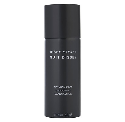 Launch year: 2014. Fragrance Family: Woody Spicy. Top notes: Bergamot, Grapefruit. Heart notes: Leather, Spices, Woods, Vetiver. Base notes: Patchouli, Incense, Tonka bean. Design house: Issey Miyake. Design house category: fashion. Design house country: Japan. Scent name: Nuit D'issey. Gender: Mens. Category: Fragrance. SubType: Deodorant Spray. Size: 5.0 oz. Barcode: 3423474889358. Issey Miyake Mens Nuit D'issey Deodorant Spray 5.0 oz Fragrances 3423474889358. <br/><br/> This item is only valid for shipment in the Contiguous United States & Canada.