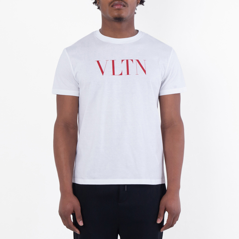 Valentino Mens Tops. Fashion category: Graphic Tees. SKU: 5V3MG10V3LE0BO. Color: White. Valentino Mens Logo-Print Cotton T-Shirt. A contemporary staple with timeless appeal, this cotton T-shirt from Valentino Garavani is elevated by a bold logo print across the chest. Designed with a classic crew neck and short sleeves, it offers a clean silhouette and effortless styling versatility. 100% Cotton. Made in Italy.