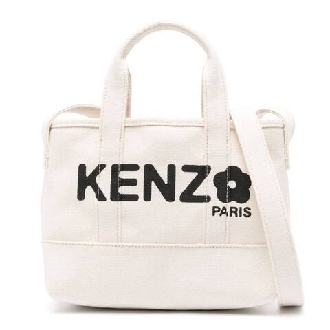 Kenzo Mens Tote. SKU: FE68SA910F36.3. Color: Ecru. Kenzo Boke Flower Motif Canvas Bag. This bag features cotton/canvas material, two top handles, a single shoulder strap, a logo print on the front, and the signature Boke Flower motif. It includes a main compartment, an internal card slot, an internal logo patch, full lining, silver-tone hardware, and a hook fastening. Cotton 100%.