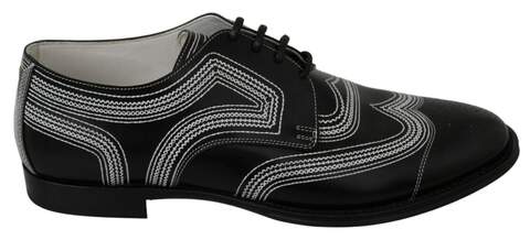 Dolce & Gabbana Black Leather Derby Formal White Lace Shoes - EU44/US11 - MV3002- 44 (LPN393071)