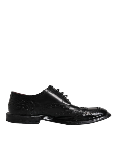 Dolce&Gabbana Black Leather Derby Wingtip Formal Shoes - EU42/US9 - MV6364-42 (LPN393097)