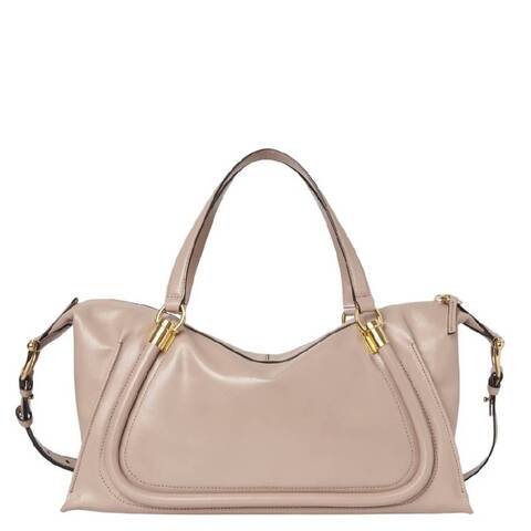 Chloe Ladies Shoulder Bag. SKU: CHC24AS750N8228V. Color: Deep Beige. Size: H 19cm x W 41.5cm x D 18cm. Chloe Paraty 24 Leather Shoulder Bag. This shoulder bag features a top zip closure, sturdy top handles, an adjustable and detachable shoulder strap, one main compartment, and an inside flat pocket for added organization. 100% Leather.
