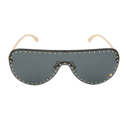 Versace Sunglasses. Series number: VE2230B. Color code: 100287. Shape: Irregular. Lens Width: 45 mm. Lens Bridge: 145 mm. Arm Length: 140 mm. 100% UV protection. Non-Polarized. Frame Material: Metal. Frame Color: Gold. Lenses Type: Dark Gray. Rim Style: Semi-Rimless. UPC/EAN code: 8056597384759. Versace Dark Gray Irregular Ladies Sunglasses VE2230B 100287 45.<br/><br/>Manufacturer's Packaging Included. Packaging Size And Color May Vary.
