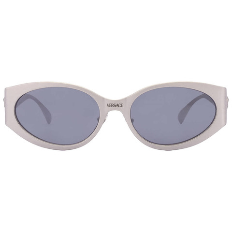Versace Sunglasses. Series number: VE2263. Color code: 12666G. Shape: Oval. Lens Width: 56 mm. Lens Bridge: 18 mm. Arm Length: 140 mm. 100% UV protection. Frame Material: Metal. Frame Color: Matte Silver. Lenses Type: Light Grey Mirrored Black. Rim Style: Full-Rim. UPC/EAN code: 8056597921589. Versace Light Grey Mirrored Black Oval Ladies Sunglasses VE2263 12666G 56.<br/><br/>Manufacturer's Packaging Included. Packaging Size And Color May Vary.