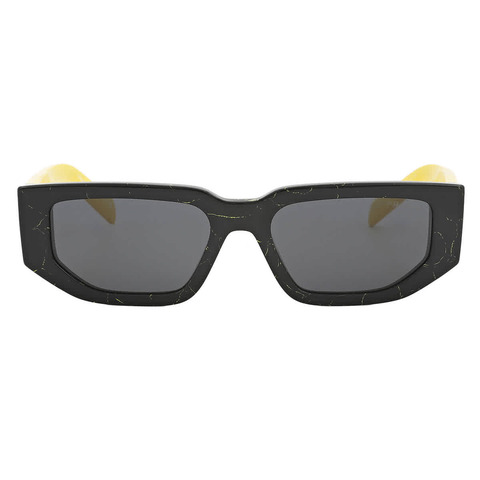 Prada Sunglasses. Series number: PR 09ZS. Color code: 19D5S0. Shape: Rectangular. Lens Width: 54 mm. Lens Bridge: 18 mm. Arm Length: 140 mm. 100% UV protection. Non-Polarized. Frame Material: Plastic. Frame Color: Black Yellow Marble. Lenses Type: Dark Grey. Rim Style: Full-Rim. UPC/EAN code: 8056597744164. Prada Dark Grey Rectangular Mens Sunglasses PR 09ZS 19D5S0 54.<br/><br/>Manufacturer's Packaging Included. Packaging Size And Color May Vary.