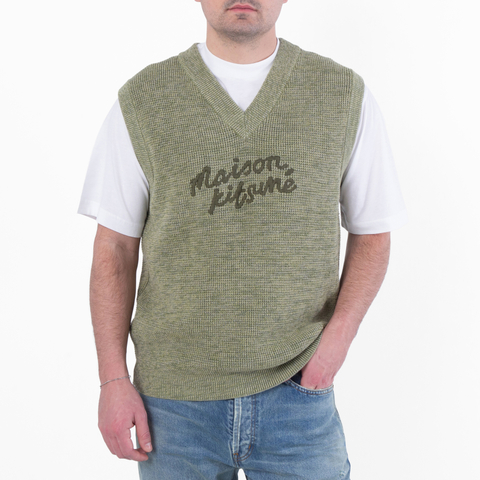 Maison Kitsune Embroidered Logo Sleeveless Sweater, Size Large - MM00808KT1108-KHAKI GREEN MELAN (LPN393646)