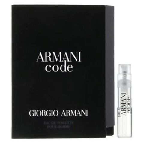Launch year: 2004. Top notes: Bergamot, Lemon. Heart notes: Olive Flower. Base notes: Guiac Wood, Tonka Bean. Design house: Giorgio Armani. Scent name: ARMANI CODE. Gender: Mens. Category: Perfume. SubType: EDT. Size: 0.04 oz. Barcode: 3614273636476. Giorgio Armani Mens ARMANI CODE EDT 0.04 oz Fragrances 3614273636476. <br/><br/> This item is only valid for shipment in the Contiguous United States.
