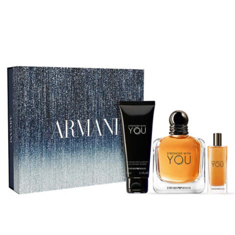 Launch year: 2017. Fragrance Family: Aromatic Fougere. Top notes: Cardamom, Pink pepper, Violet leaf. Heart notes: Sage. Base notes: Chestnut, Vanilla. Design house: Giorgio Armani. Design house category: fashion. Design house country: Italy. Scent name: Emporio Armani Stronger With You. Gender: Mens. Category: Fragrance. SubType: Gift Set. Barcode: 3614274692570. Armani Stronger With You 3Pc Men Gift Set - 3.4Oz Edt + 2.5Oz Shower Gel + 0.50Oz Edt. Giorgio Armani Mens Emporio Armani Stronger With You Gift Set Fragrances 3614274692570. <br/><br/> This item is only valid for shipment in the Contiguous United States & Canada.