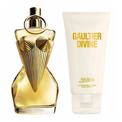 Launch year: 2023. Fragrance Family: Amber Floral. Top notes: Calypsone, Red berries, Bergamot. Heart notes: Lily, Jasmine, Ylang-ylang. Base notes: Meringue, Musk, Patchouli. Design house: Jean Paul Gaultier. Design house category: fashion. Design house country: France. Scent name: Divine. Gender: Ladies. Category: Fragrance. SubType: Gift Set. Barcode: 8435415098922. Jean Paul G Divine 1.7 Edp L + 2.5 B/L. Jean Paul Gaultier Ladies Divine Gift Set Fragrances 8435415098922. <br/><br/> This item is only valid for shipment in the Contiguous United States & Canada.