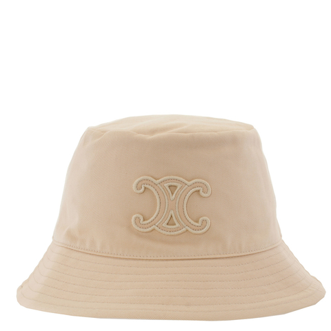 Celine Ladies Hats. Fashion category: Hats. SKU: 2AUE0968P.03HX. Color: Champagne Fonce. Celine Triomphe Bucket Hat In Cotton Gabardine. Crafted from cotton gabardine, this bucket hat features a tone-on-tone Triomphe patch and a 2-inch (5.5 cm) brim with topstitching for added detail. 100% Cotton.