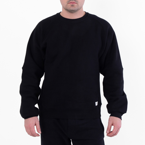 Saint Laurent Mens Tops. Fashion category: Hoodies & Sweatshirts. SKU: 799172 Y37WH 1000. Color: Black. Saint Laurent Oversized Cotton Crewneck Sweatshirt. Saint Laurent cotton sweatshirt featuring a classic crew neckline, long sleeves with ribbed cuffs, a ribbed hem, and a minimalist design finished with a subtle logo tag near the hem. 100% Cotton.
