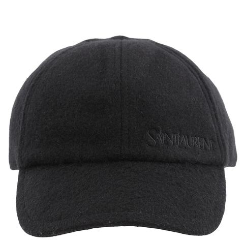 Saint Laurent Ladies Hats. Fashion category: Hats. SKU: 810947 3YR01 1000. Saint Laurent Womens Embroidered Cap. This Saint Laurent cap is designed with an adjustable back strap for a customized fit and features a refined embroidered logo at the front. Crafted from 100% cashmere with a soft 100% cotton lining, the cap is finished in a plush fuzzy melton fabric, offering both elevated texture and understated luxury. Material: 100% cashmere (self), 100% cotton (lining). Made in Italy.
