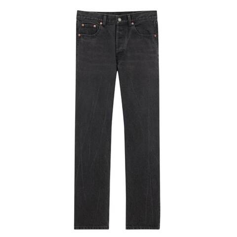 Saint Laurent Mens Bottoms. Fashion category: Jeans & Denim. SKU: 795478 Y06CA 1319. Color: Used Paris Black. Saint Laurent Black Denim Loose-Fit Jeans. Mid-rise five-pocket jeans designed with a straight leg and a relaxed, loose fit. Features a button-fly closure, waistband with belt loops, and a Saint Laurent jacron detail. 100% Cotton. Made in Japan.