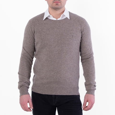 Saint Laurent Mens Tops. Fashion category: Cardigans & Sweaters. SKU: 796556 YALL2 2353. Color: Brown. Saint Laurent Cassandre Sweater In Cashmere. Cassandre sweater crafted from certified cashmere, featuring a crewneck, raglan sleeves, and tonal Cassandre embroidery on the chest. 100% Cashmere. Made in Italy.