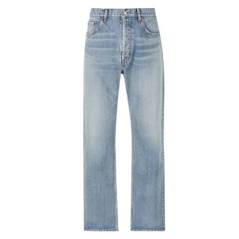 Saint Laurent Mens Bottoms. Fashion category: Jeans & Denim. SKU: 795478 Y35AQ 4092. Color: Blue Beat. Saint Laurent Blue Beat Denim Loose-Fit Jeans. Mid-rise jeans crafted from certified cotton, featuring a straight leg with a relaxed, loose fit and a button-fly closure. Designed with five pockets, a waistband with belt loops, and finished with a Saint Laurent jacron. 100% Cotton. Made in Japan.