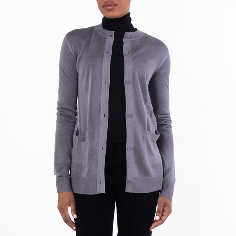 Saint Laurent Ladies Tops. Fashion category: Cardigans & Sweaters. SKU: 795317 Y76RI 1249. Saint Laurent Sheer Silk Cardigan. Sheer buttoned cardigan designed with a round neckline and an elongated, loose fit. Finished with a front button closure and two patch pockets at the front for a relaxed, refined look. 100% Silk. Made in Italy.