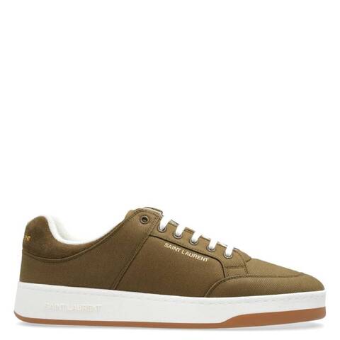 Saint Laurent Mens Sneakers. SKU: 757316 AANAA 3312. Saint Laurent Gabardine Sl/61 Low-Top Sneakers. Low-top lace-up sneakers featuring a gold-tone Saint Laurent signature on the side and back heel counter, with a Saint Laurent inscription along the side of the sole. Finished with a durable rubber sole. Material: Cotton, Calfskin. Made in Italy. <br/><br/><b>Please visit the brand website for sizing information.</b>