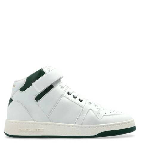 Saint Laurent Mens Sneakers. SKU: 757317 00NI0 9041. Color: White. Saint Laurent Lax High-Top Sneakers. Lax sneakers crafted from smooth-grain calf leather with a panelled design. Featuring a round toe with perforated detailing, a logo-debossed tongue, and a logo stamp at the heel. Designed with a padded ankle, mesh lining, branded insole, and a flat rubber sole, finished with a front touch-strap over a lace-up fastening. Outer: Calf Leather 100%. Maded in Italy. <br/><br/><b>Please visit the brand website for sizing information.</b>
