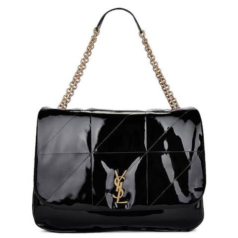 Saint Laurent Ladies Shoulder Bag. SKU: 742431 2IU67 1000. Color: Black. Size: 16 x 10.5 x 3.75. Saint Laurent Jamie 4.3 Leather Chain Bag. This chain bag is crafted from glossy patent leather with a twill lining. Designed with a flap and tie closure, it features a gold-coloured Cassandre logo at the front. The interior offers a single main compartment with a zippered compartment and a leather slip pocket, while the multifunctional gold-coloured leather carrying chain with two sections allows for versatile wear. Material: Leather. Made in Italy.