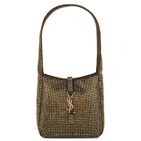 Saint Laurent Ladies Shoulder Bag. SKU: 809464 FADSQ 2803. Color: Havana. Size: 5.9 x 6.3 x 2.8. Saint Laurent Mini Le 5 A 7 Supple Shoulder Bag. The iconic Le 5 A 7 bag is crafted from rhinestone-adorned silk satin and features a leather tab closure decorated with the Cassandre motif. Its supple construction is lined in silk satin, and the evening-ready silhouette can be carried by hand or on the shoulder. Finished with satin lining and bronze-toned hardware, it exudes refined elegance for special occasions. Material: Viscose, Silk. Made in Italy.