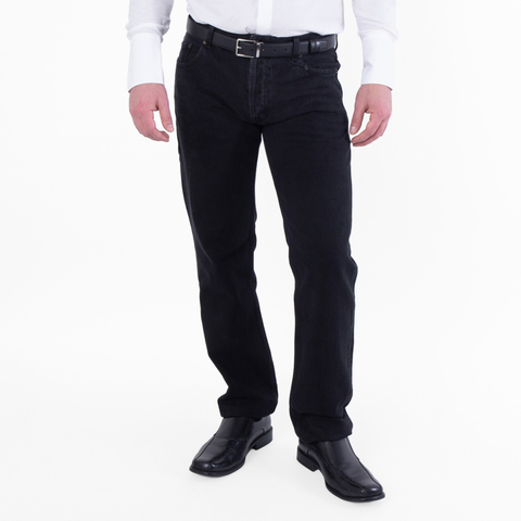 Saint Laurent Mens Bottoms. Fashion category: Jeans & Denim. SKU: 752318 Y16PF 1290. Color: Plain Carbon Black. Saint Laurent Mens Straight Leg Denim Jeans. This pair of cotton denim jeans features a straight-leg silhouette with a front button fastening. Designed with belt loops, classic five-pocket styling, and a logo patch at the rear. Cotton 100% Made in Italy.