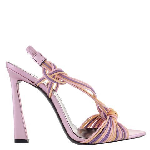 Saint Laurent Ladies Heels. SKU: 731567 AABO3 5874. Color: Malva/Peach/Gerbera. Saint Laurent Womens Scoubi Strappy Sandals. Scoubi strappy slingback sandals featuring a pointed toe and rubber-tipped heel. Designed with an approximately 115 mm (4.5-inch) heel, a rubber upper, and a leather sole. Made in Italy. <br/><br/><b>Please visit the brand website for sizing information.</b>
