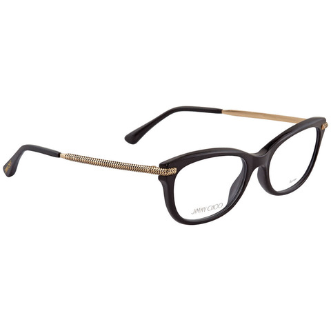 Jimmy Choo Eyeglasses. Color code: 807. Shape: Rectangular. Lens Width: 52 mm. Lens Bridge: 18 mm. Arm Length: 140 mm. Frame Material: Plastic. Frame Color: Black. Lenses Type: Demo. UPC/EAN code: 716736072784. Jimmy Choo Demo Rectangular Ladies Eyeglasses JC217 807 52.