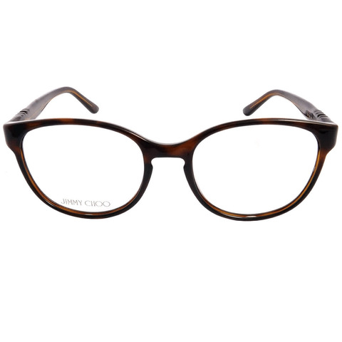 Jimmy Choo Eyeglasses. Series number: JC240. Color code: 0086. Shape: Round. Lens Width: 52 mm. Lens Bridge: 18 mm. Arm Length: 140 mm. Frame Material: Plastic. Frame Color: Dark Havana. Lenses Type: Transparent. Rim Style: Full-Rim. UPC/EAN code: 716736175157. Jimmy Choo Transparent Round Ladies Eyeglasses JC240 0086 52.