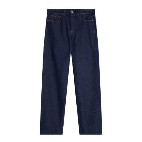 Maison Kitsune Mens Bottoms. Fashion category: Jeans & Denim. SKU: OM01118WW0081-INDIGO. Color: Indigo. Maison Kitsune Straight Cut Denim Jeans. These denim jeans feature a straight cut with a classic waistband and belt loops. Designed with five pockets and a hidden engraved metal button closure, theyre finished with a tone-on-tone Profile Fox embroidery on the back pocket and a Maison Kitsune embossed leather jacron at the back. 100% Cotton. Made in Bulgaria.