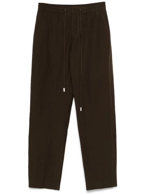 cedar brown concealed front button, hook and zip fastening drawstring fastening elasticated waistband two side slash pockets