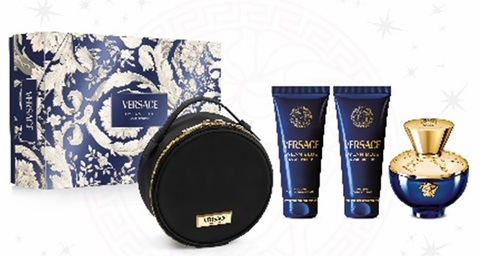 Launch year: 2018. Fragrance Family: Floral Fruity. Top notes: Blackcurrant, Granny smith, Clover, Forget-me-not, Shisolia. Heart notes: Eglantine rose, Petalia, Rosyfolia, Peach, Jasmine. Base notes: Styrax, White smooth woods, Musk, Patchouli heart. Design house: Versace. Design house category: fashion. Design house country: Italy. Scent name: Dylan Blue. Gender: Ladies. Category: Fragrance. SubType: Gift Set. Barcode: 8011003902897. Pour Femme Dylan Blue Set Edp100+Bath&Shower Gel100+Body Lotion100+Gwp. Versace Ladies Dylan Blue Gift Set Fragrances 8011003902897. <br/><br/> This item is only valid for shipment in the Contiguous United States & Canada.