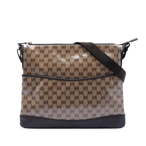 The Gucci GG Crystal Crossbody is a stylish and versatile handbag crafted with a durable coated canvas body and refined leather trim. Featuring an adjustable flat canvas shoulder strap, a secure top zip closure, an exterior front slip pocket, and an interior slip pocket, this designer crossbody offers both elegance and practicality. With dimensions of 11.81 x 14.96 x 0.39 inches, it provides a sleek profile while offering enough space for your essentials, making it a beautiful choice for anyone seeking luxury and contemporary style.<br /><br /> Designed for both fashion and functionality, this pre-owned Gucci GG Crystal Crossbody is an excellent option for those who appreciate iconic designer handbags with everyday versatility. The classic Gucci design, lightweight structure, and convenient pocket organization make it easy to carry your daily essentials while elevating any outfit. Whether paired with casual looks or more polished ensembles, this crossbody bag is perfect for everyday use.<br /><br /> This item is a pre-owned Gucci GG Crystal Crossbody, model 374411 493492, and does not include any additional inclusions. Condition Rating: B+. Comments: Exterior Back Creased. Exterior Bottom Stained With Others. Exterior Corners Worn. Exterior Front Stained With Others. Exterior Handle/Strap Creased. Exterior Side Stained With Others. Exterior Top Stained With Others. Hardware Closure Scratched. Hardware Practical Attachment Scratched. Zipper Scratched. Interior Lining Stained With Others. Item# NJ8OI2GWJGG0G7Z2. This is a great opportunity to own an authentic handbag at a more accessible price.