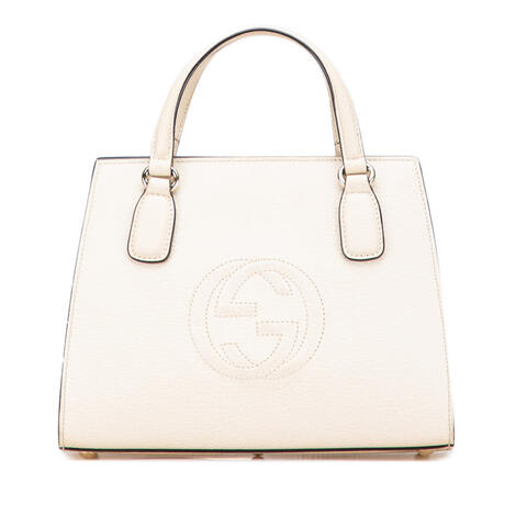 The Gucci Medium Dollar Calf Soho Top Handle Convertible Tote is a sophisticated designer handbag crafted from supple leather with a structured yet versatile silhouette. Featuring flat leather handles, a detachable flat shoulder strap, a secure top zip closure, and interior zip and slip pockets, this luxury tote offers both elegance and practicality for daily wear. Its timeless design and iconic Gucci appeal make it a standout accessory for any wardrobe, blending luxury and contemporary style.<br /><br /> Designed for both fashion and functionality, this pre-owned Gucci satchel offers a polished look with thoughtful storage for your essentials. The compact yet practical dimensions of approximately 7.68 inches high, 10.04 inches wide, and 4.72 inches deep make it easy to carry from day to night, while the convertible design allows you to wear it by hand or over the shoulder. Whether paired with casual outfits or more refined ensembles, this authentic Gucci handbag is perfect for everyday use.<br /><br /> This pre-owned Gucci Medium Dollar Calf Soho Top Handle Convertible Tote, model 607722 213317, is rated B+ and remains a desirable choice for luxury lovers seeking authentic designer style at a better value. Comments: Exterior Bottom Stained With Others. Exterior Corners Worn. Exterior Front Stained With Others. Exterior Handle/Strap Stained With Others, Worn. Exterior Side Stained With Others, Worn. Exterior Top Worn. Hardware Practical Attachment Scratched. Zipper Scratched. Interior Lining Stained With Others, Stained With Pen Mark. Inclusions: None. Item# U0PHZ0SYQWADL5QX. This is a great opportunity to own an authentic handbag at a more accessible price.