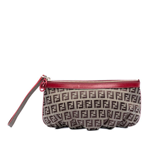 Pre-owned Fendi Zucchino Canvas Clutch Ladies 8M0273 HGF 128 2384 showcases the iconic Zucchino canvas with refined leather trim, a flat leather wrist strap, and a secure top zip closure. Compact yet stylish, this designer clutch is an elegant choice for carrying your essentials while elevating any outfit with luxury and contemporary style.<br /><br /> Designed for both fashion and functionality, this Fendi clutch offers a sleek silhouette that is ideal for day-to-night wear. Its lightweight design and convenient wrist strap make it easy to carry, while the zip-top closure helps keep your belongings secure, making it perfect for everyday use.<br /><br /> This authentic pre-owned Fendi handbag measures approximately 4.92 inches high x 8.86 inches wide x 0.20 inches deep. Condition Rating: AB. Comments: Exterior Front Worn. Exterior Side Worn. Exterior Top Stained With Others. Zipper Scratched. Inclusions: Dust bag. Model: Zucchino Canvas Clutch. Item# N3SVPDF8B2FJM7IJ. This is a great opportunity to own an authentic handbag at a more accessible price.