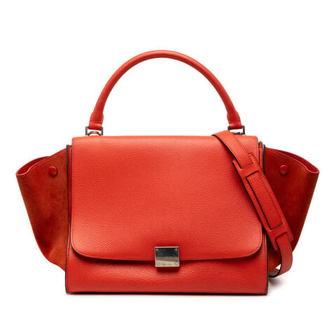 The Celine Medium Drummed Calfskin and Suede Trapeze Satchel is a timeless designer handbag that blends elegance with versatility. Crafted from drummed calf leather with soft suede side panels, this iconic Trapeze bag features a rolled top handle, a detachable flat leather strap, a front flap with clasp closure, a top zip closure, an exterior back zip pocket, and interior slip pockets for organized storage. Its structured silhouette and refined details make it a standout accessory that captures luxury and contemporary style.<br /><br /> Designed for both fashion and functionality, this pre-owned Celine Trapeze Satchel offers the ideal balance of sophistication and practicality. With dimensions of 9.06 x 11.81 x 7.09 inches, it provides ample space for daily essentials while maintaining a polished, upscale look. The included shoulder strap adds convenient carrying options, making this authentic Celine handbag a chic and versatile choice for perfect for everyday use.<br /><br /> Model: Medium Drummed Calfskin and Suede Trapeze Satchel. Item# O84O2RBKBHICQYN2. Pre-owned Celine Medium Drummed Calfskin and Suede Trapeze Satchel Ladies S-VP-1103. Rating: AB. Condition for pre-owned: Exterior bottom worn and stained with others; exterior handle/strap stained with others; exterior side worn and out of shape; exterior top worn and stained with transfer of color; hardware closure scratched; hardware practical attachment scratched; zipper scratched; interior lining scratched; interior pocket stained with others. Inclusions: Shoulder Strap. This is a great opportunity to own an authentic handbag at a more accessible price.
