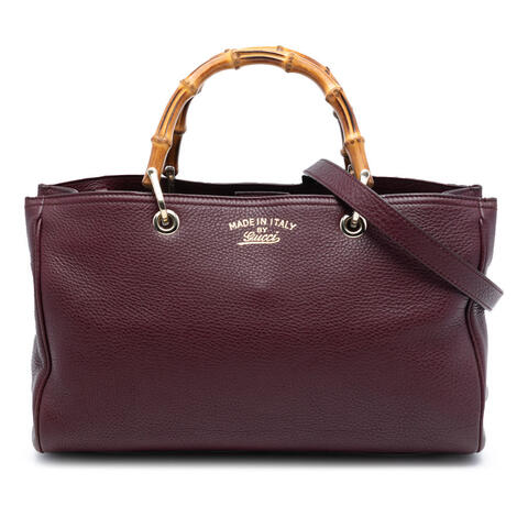 The Gucci Medium Calfskin Bamboo Shopper Satchel is a timeless designer handbag crafted from luxurious calfskin leather and finished with iconic bamboo top handles. This elegant satchel features a detachable flat leather shoulder strap, an open top with a magnetic closure, an interior zip compartment, and both zip and slip pockets for stylish organization. Its structured silhouette and signature Gucci details make it a standout choice for anyone seeking luxury and contemporary style.<br /><br /> Designed for both fashion and functionality, this pre-owned Gucci Bamboo Shopper Satchel offers ample space for your daily essentials while maintaining a refined, polished look. The medium size makes it versatile enough for work, shopping, or casual outings, and the included shoulder strap provides added convenience for hands-free wear. With its sophisticated design and practical interior layout, this authentic Gucci handbag is perfect for everyday use.<br /><br /> This pre-owned Gucci Medium Calfskin Bamboo Shopper Satchel, model 323660 520981, measures approximately 8.07 inches high x 13.19 inches wide x 5.91 inches deep and includes the shoulder strap. Condition Rating: B+. Comments: Exterior Back Stained With Others, Creased, Worn. Exterior Bottom Creased. Exterior Corners Repainted, Stained With Others. Exterior Front Creased. Exterior Handle/Strap Creased, Worn, Stained With Others, Cracked. Exterior Side Creased. Exterior Top Worn. Hardware Closure Scratched. Hardware Practical Attachment Scratched. Zipper Scratched. Interior Lining Stained With Others, Worn. Interior Pocket Stained With Others. The corners were repainted. This is a great opportunity to own an authentic handbag at a more accessible price.