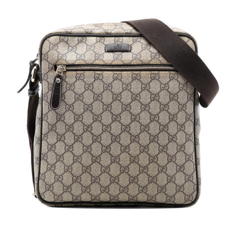 The pre-owned Gucci GG Supreme Crossbody Unisex 201448 204990 is a stylish designer handbag that blends iconic appeal with practical versatility. Crafted with a durable coated canvas body and finished with leather trim, this Gucci crossbody bag features a sleek silhouette, a flat strap, a secure top zip closure, an exterior front zip pocket, and an interior slip pocket for organized storage. With dimensions of 10.63 x 10.24 x 2.76 inches, it offers a compact yet functional design that reflects luxury and contemporary style. <br /><br /> Designed for both fashion and functionality, this Gucci GG Supreme Crossbody is an excellent choice for anyone seeking a timeless accessory that complements a wide range of looks. The signature GG Supreme canvas gives the bag a recognizable and elevated designer finish, while the convenient pocket layout helps keep daily essentials within easy reach. Whether paired with casual outfits or more polished ensembles, this crossbody bag is perfect for everyday use. <br /><br /> As a pre-owned designer handbag, this piece offers the opportunity to enjoy authentic Gucci craftsmanship at a more attainable value. Condition Rating: AB. Comments: Exterior Handle/Strap Stained With Others, Creased, Worn. Exterior Side Worn. Exterior Top Stained With Others. Hardware Practical Attachment Scratched. Zipper Scratched. Inclusions: None. Model: GG Supreme Crossbody. Item# 5JR81XN57QSTTCYA. This is a great opportunity to own an authentic handbag at a more accessible price.
