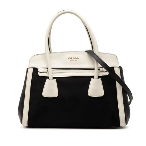 Pre-owned Prada Bicolor Saffiano Cuir Trimmed Canvas Satchel Ladies HMDAIB6OA7XSCLXA (LPN397260)