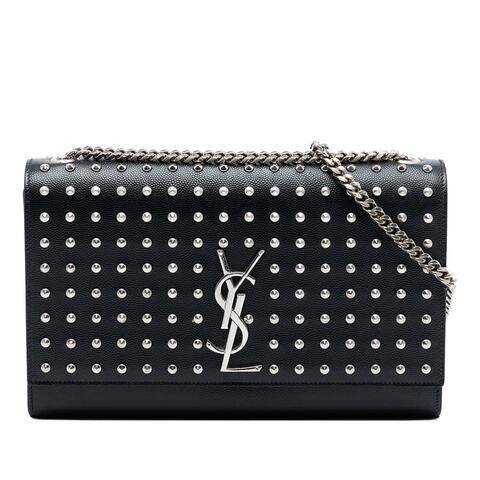 The Saint Laurent Medium Grain De Poudre Studded Kate Crossbody is a chic designer handbag that blends iconic elegance with edgy detailing. Crafted from high-quality leather with striking stud accents, this Kate crossbody bag features a chain link shoulder strap, a front flap with a signature metal YSL logo and magnetic closure, and an interior slip pocket for easy organization. Compact yet statement-making, its dimensions are 6.30 x 9.25 x 1.97 inches, making it an ideal choice for day-to-night wear with luxury and contemporary style. <br /><br /> Designed for both fashion and functionality, this Saint Laurent crossbody offers the perfect balance of sophistication and convenience. The sleek silhouette, premium grain de poudre leather, and timeless YSL hardware make it a standout accessory for elevating both casual and dressy looks. With its practical interior slip pocket and hands-free chain strap, this authentic Saint Laurent handbag is perfect for keeping essentials close while remaining perfect for everyday use. <br /><br /> This pre-owned Saint Laurent Medium Grain De Poudre Studded Kate Crossbody is a smart choice for luxury lovers seeking a coveted designer piece at a better value. Condition Rating: B+. Comments: Exterior Side Stained With Others, Worn. Hardware Closure Scratched. Hardware Practical Attachment Scratched. Interior Lining Stained With Others. Inclusions: None. Model: Medium Grain De Poudre Studded Kate Crossbody. Item# H3JY1SP6T6TCIDMI. Pre-owned Saint Laurent Medium Grain De Poudre Studded Kate Crossbody Ladies PTR86405A.1214. This is a great opportunity to own an authentic handbag at a more accessible price.