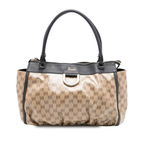 The pre-owned Gucci GG Crystal Abbey D Ring Tote is a timeless designer handbag that blends signature elegance with practical appeal. Crafted with a durable coated canvas body, refined leather trim, rolled leather straps, a secure top zip closure, and an interior zip pocket, this Gucci tote offers both sophistication and convenience. With dimensions of 10.24 x 12.80 x 2.95 inches, it is a versatile size for carrying daily essentials while showcasing luxury and contemporary style.<br /><br /> Designed for both fashion and functionality, this Gucci GG Crystal Abbey D Ring Tote is an excellent choice for anyone seeking a stylish everyday designer bag. Its classic silhouette and iconic Gucci detailing make it easy to pair with both casual and polished looks, while the zip-top design and interior pocket help keep your belongings organized and secure. Whether you're heading to work, running errands, or meeting friends, this tote is perfect for everyday use.<br /><br /> As a pre-owned Gucci handbag, this piece offers the charm of authentic luxury at a more attainable value. Condition Rating: B+. Comments: Exterior Bottom Creased. Exterior Corners Worn. Exterior Handle/Strap Worn, Split. Exterior Side Stained With Others. Exterior Top Cracked. Hardware Practical Attachment Scratched. Zipper Scratched. Interior Lining Worn, Stained With Others. Inclusions: None. Model: GG Crystal Abbey D Ring Tote. Item# C7W5G4JZJMFDX6V1. This is a great opportunity to own an authentic handbag at a more accessible price.
