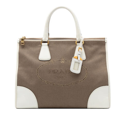 Pre-owned Prada Saffiano Trimmed Canvas Canapa Logo Double Zip Satchel Ladies QIQZZIFMKJAAJNAJ (LPN397358)